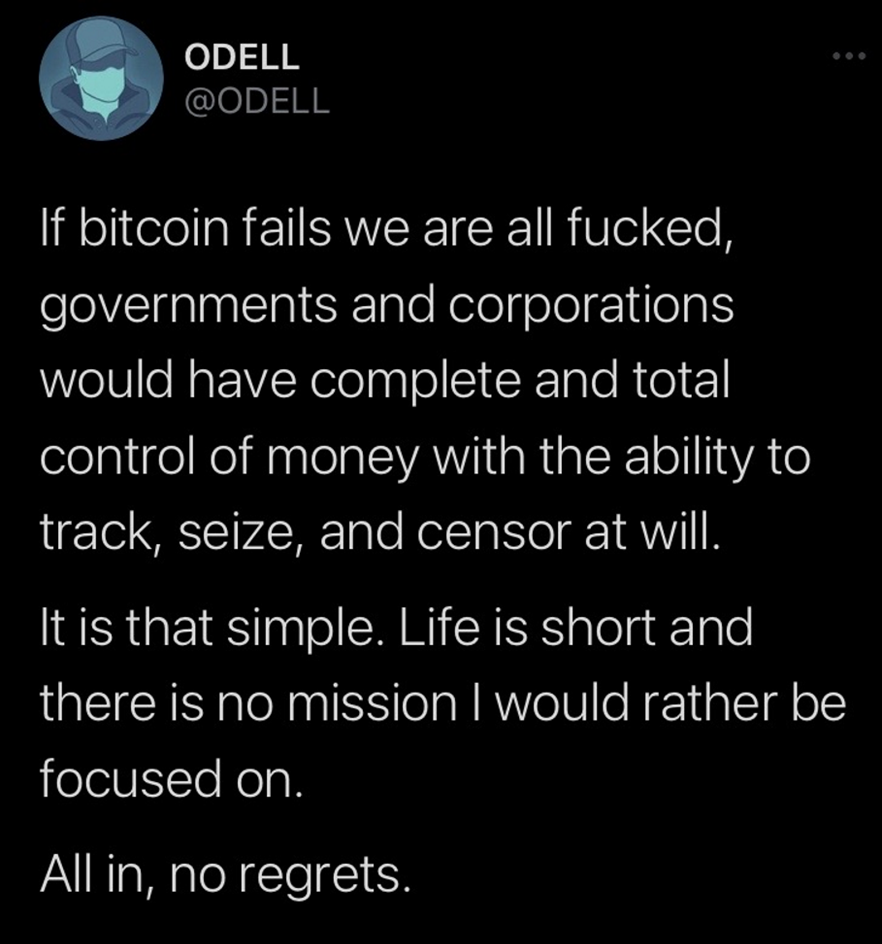 Either bitcoin succeeds or the human race irrevocably falls into a technocratic dystopia.