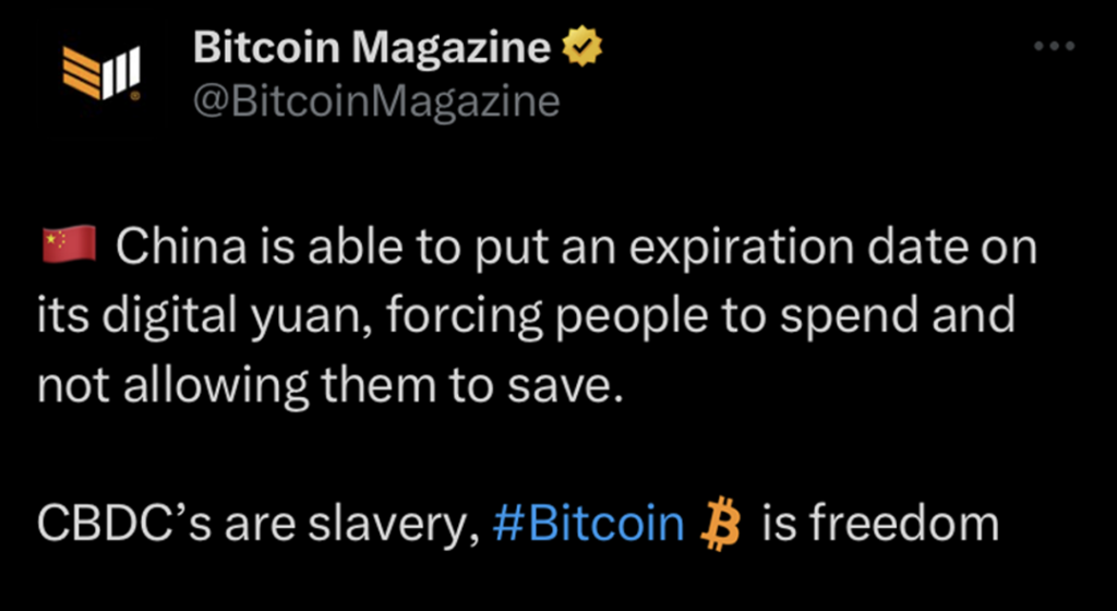 The ability to control people’s money, and therefore controlling all of their actions in society, is an ultimate power unique to digital money.